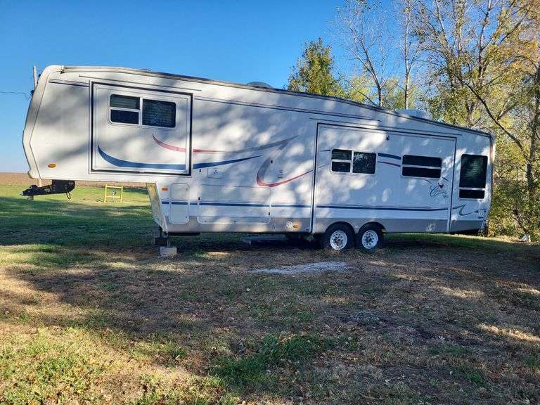 LOT 192 - 2002 cardinal Forest River LX 33 ft fifth wheel camper with two slide outs, Artic package, approx.