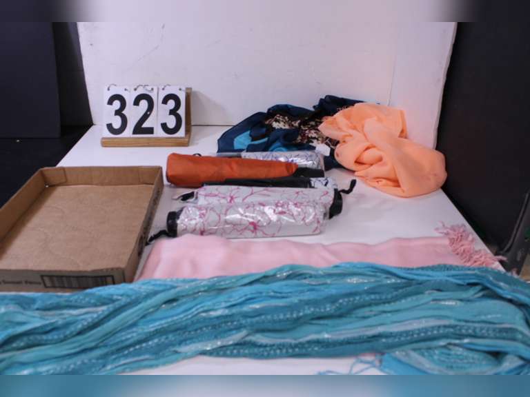 LOT 323 - Flat W/ 5 Umbrellas - Scarves
