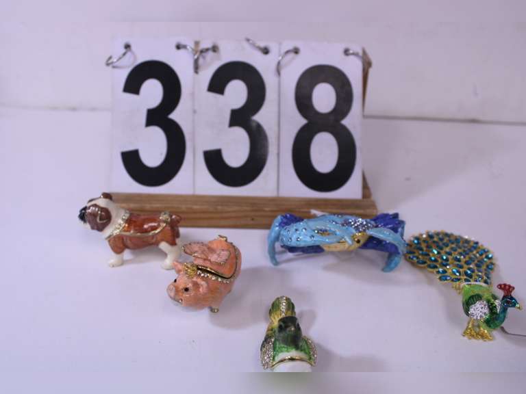LOT 338 - Trinket Boxes W/ Pig - Dog - Crab - Peacock - Humming Bird