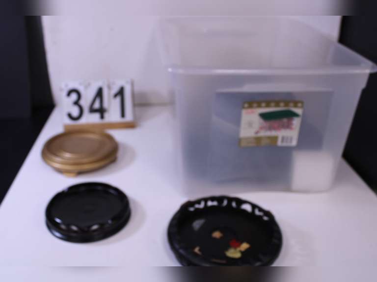 LOT 341 - Clear Tote W/ Plate Risers/ Candle Holders