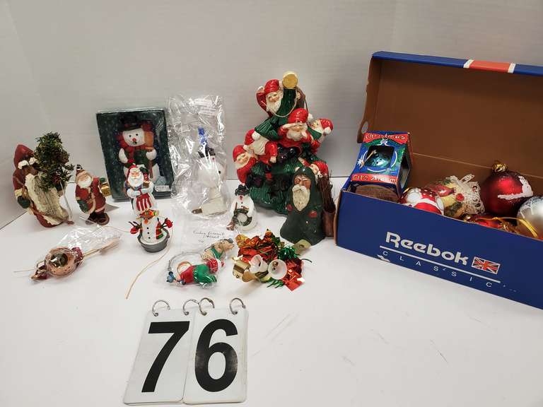 LOT 76 - Flat of Christmas Decor Includes Luminaire~ Ornaments & Santa's