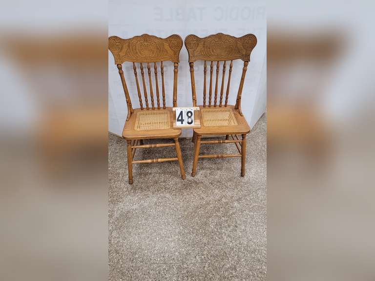 LOT 48 - 3 Cane Bottom Dining Chairs One Has damage