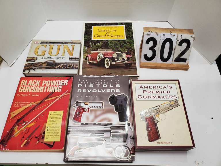 LOT 302 - Box of 4 Gun Books & 1 Car Book