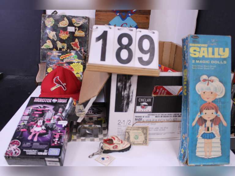 LOT 189 - Box W/ Cookie Cutter Set - Card Games - Cardinals Hat - Sally Paper dolls