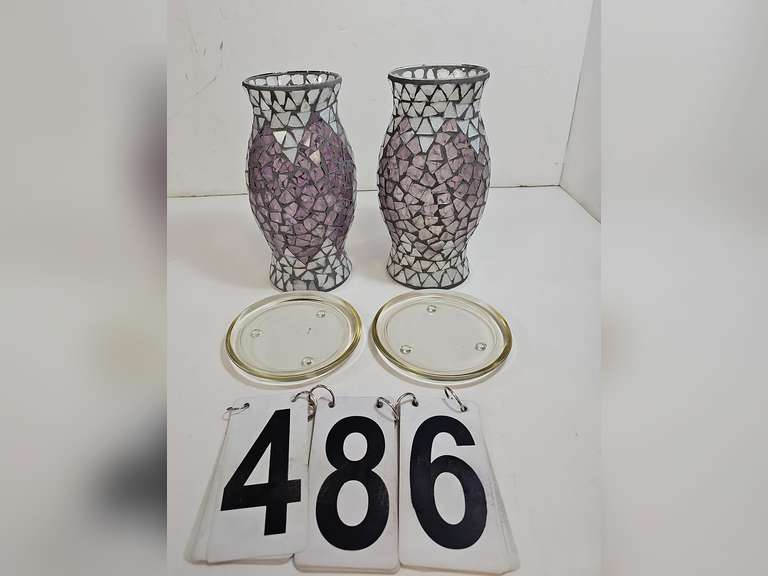 2 Lavender Garden Mosaic Two-Piece Candleholders