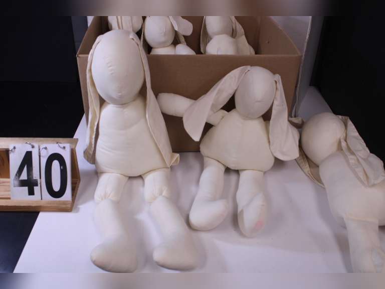 LOT 40 - Box W/ 6 Plain White Bunnies W/ Extra Arms & Legs