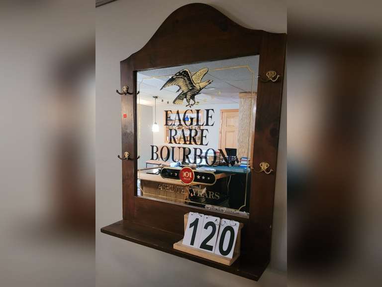 LOT 120 - Eagle Rare Burbon Mirror Hat Rack 35 X 27.5