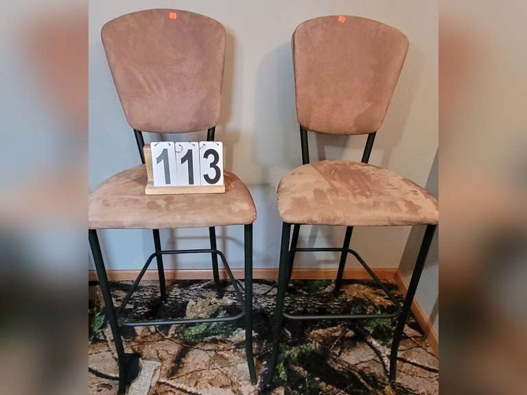 LOT 113 - 2 Suede Seat Metal Bar Stools 32" to Seat