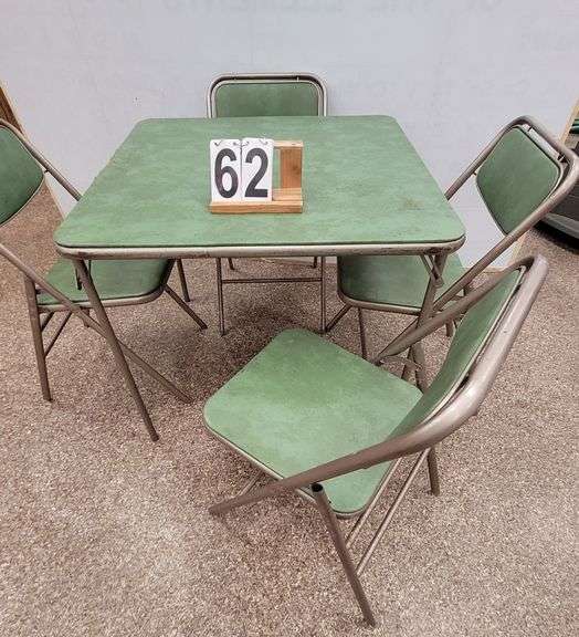 LOT 62 - Green Card Table & 4 Chairs