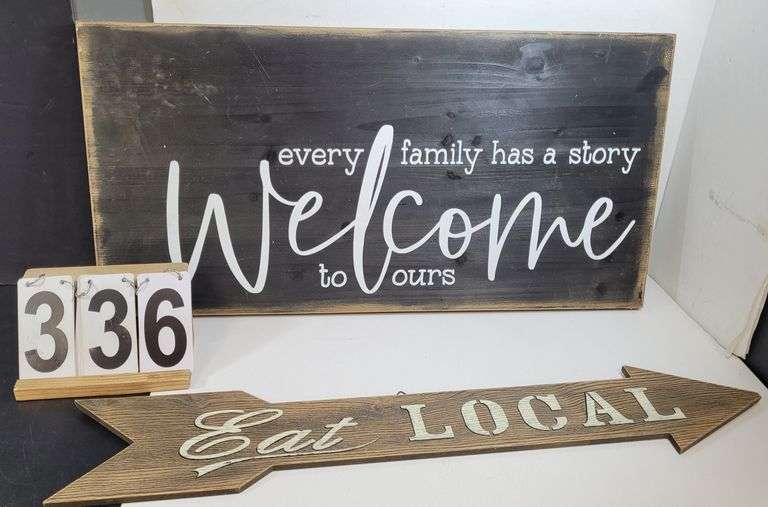 LOT 336 - Eat Local Sign 6" X 33" - Welcome Sign 16" X 31.5"