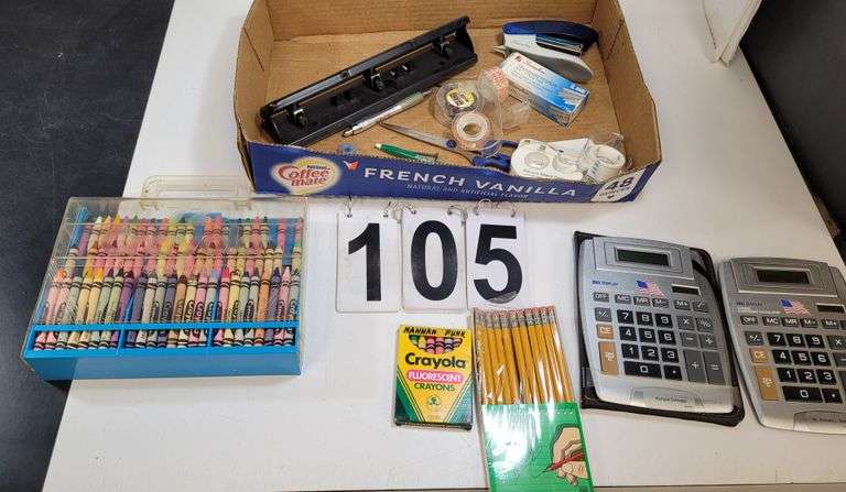 LOT 105 - Flat W/ Crayons - Calculators - Hole - Tape
